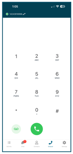 Note: You can switch between the number assigned to your user in the number on top of the dial pad.